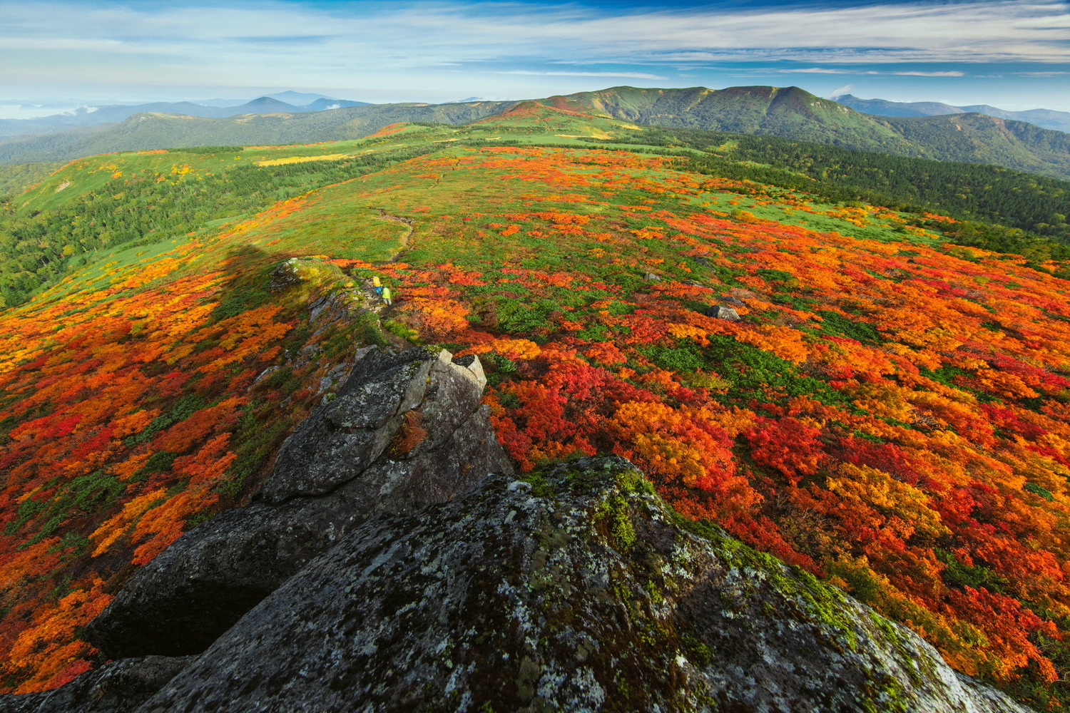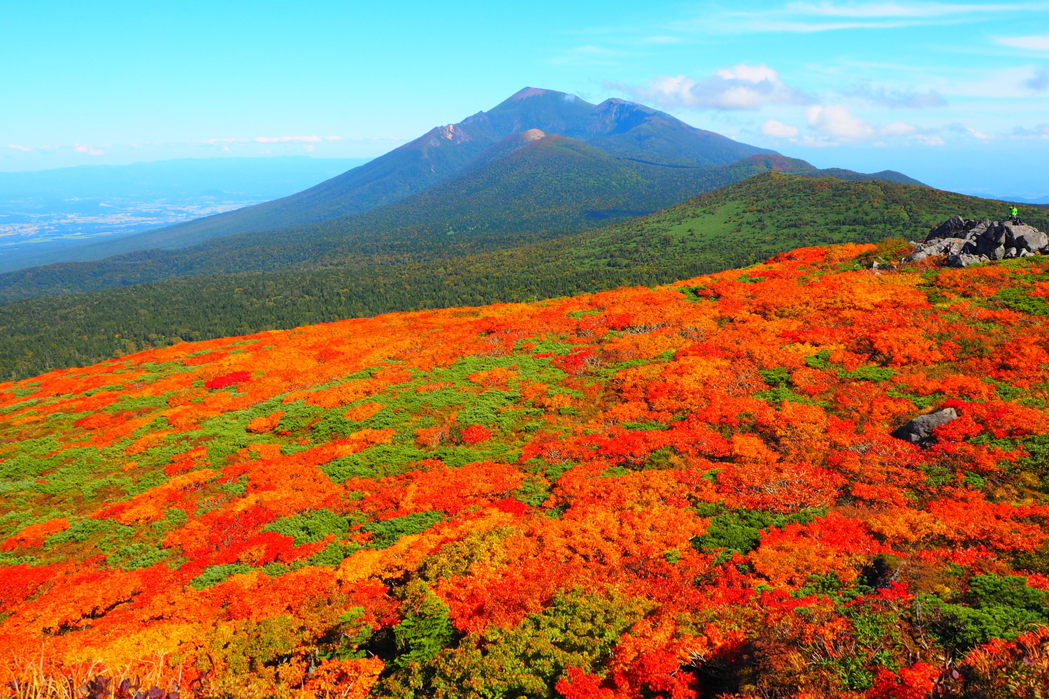 【みついしやま】 裏岩手縦走路の途中にある三ツ石山(標高1,466メートル)。 本州一紅葉が早いといわれ、どこまでも広がる秋色の絶景が登山者を楽しませる。