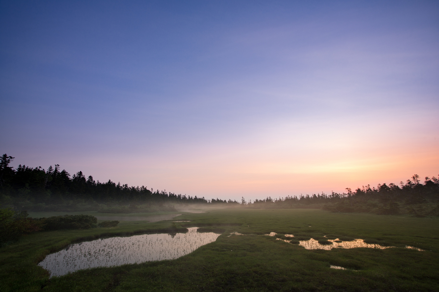 【くろやちしつげん】 アオモリトドマツの樹林に囲まれた湿原のほとりには、ニッコウキスゲ、ハクサンチドリ、キンコウカ、ワタスゲなどの高山植物が咲き乱れます。