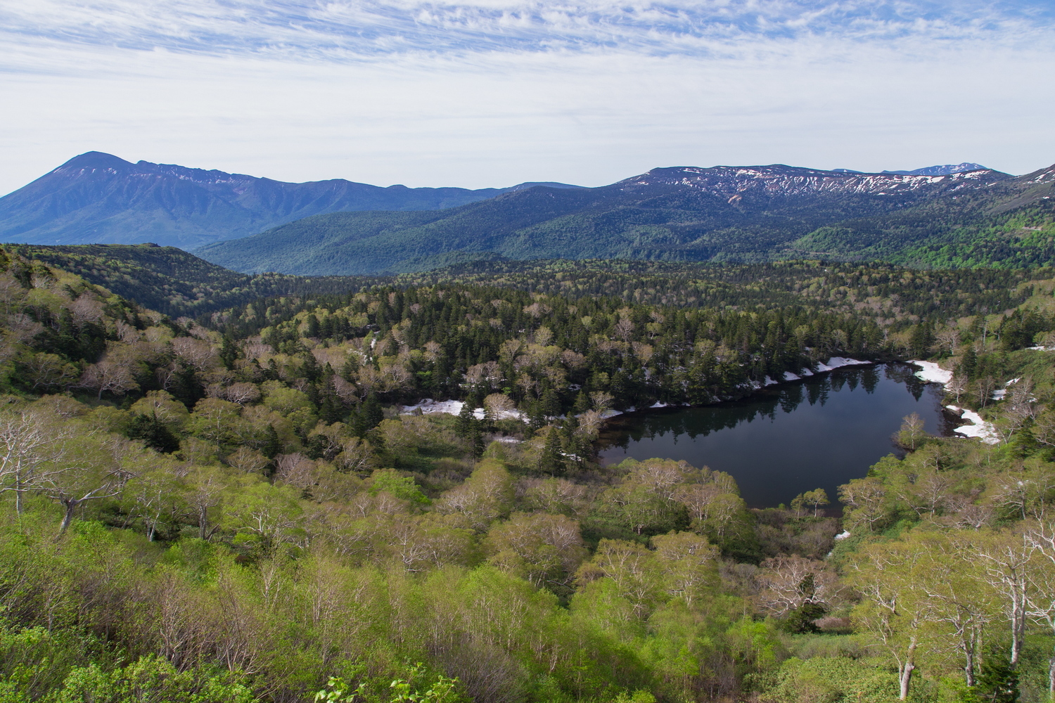 アスピーテラインから八幡平山頂に向かう途中、谷間に熊沼を見下ろす眺望は人気の撮影スポット。